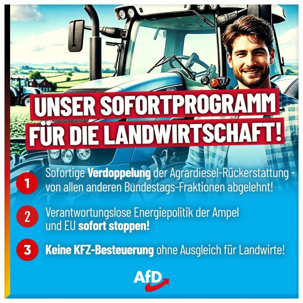 Soviel zu den Behauptungen der Kartellparteien, eine Regierungsbeteiligung der AfD würde den Landwirten nichts nützen! Wir sind die einzige Partei, die auf der Seite der Bauern, statt auf der der […]